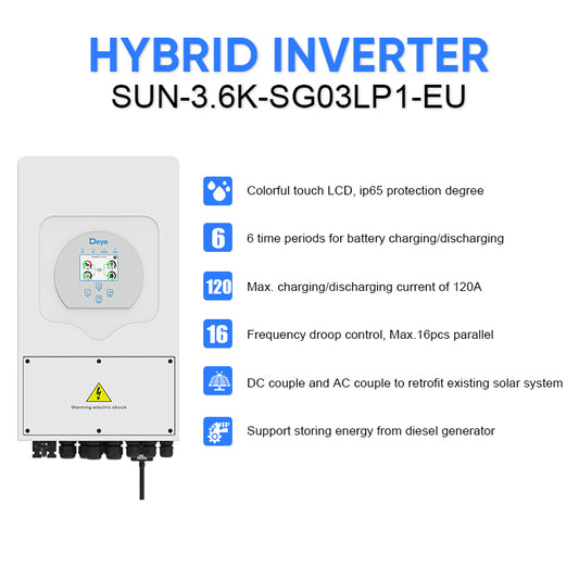 Deye SUN-3.6K-SG03LP1-EU 3.6KW LV Hybrid Inverter 230V Single Phase